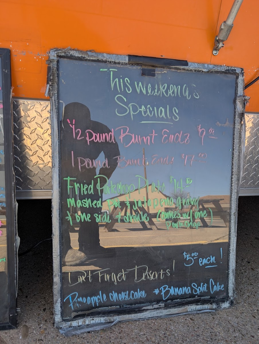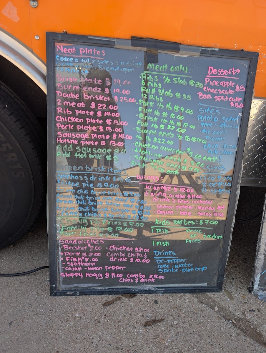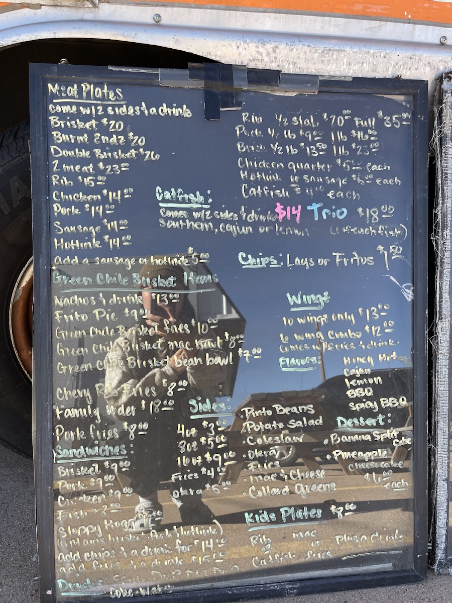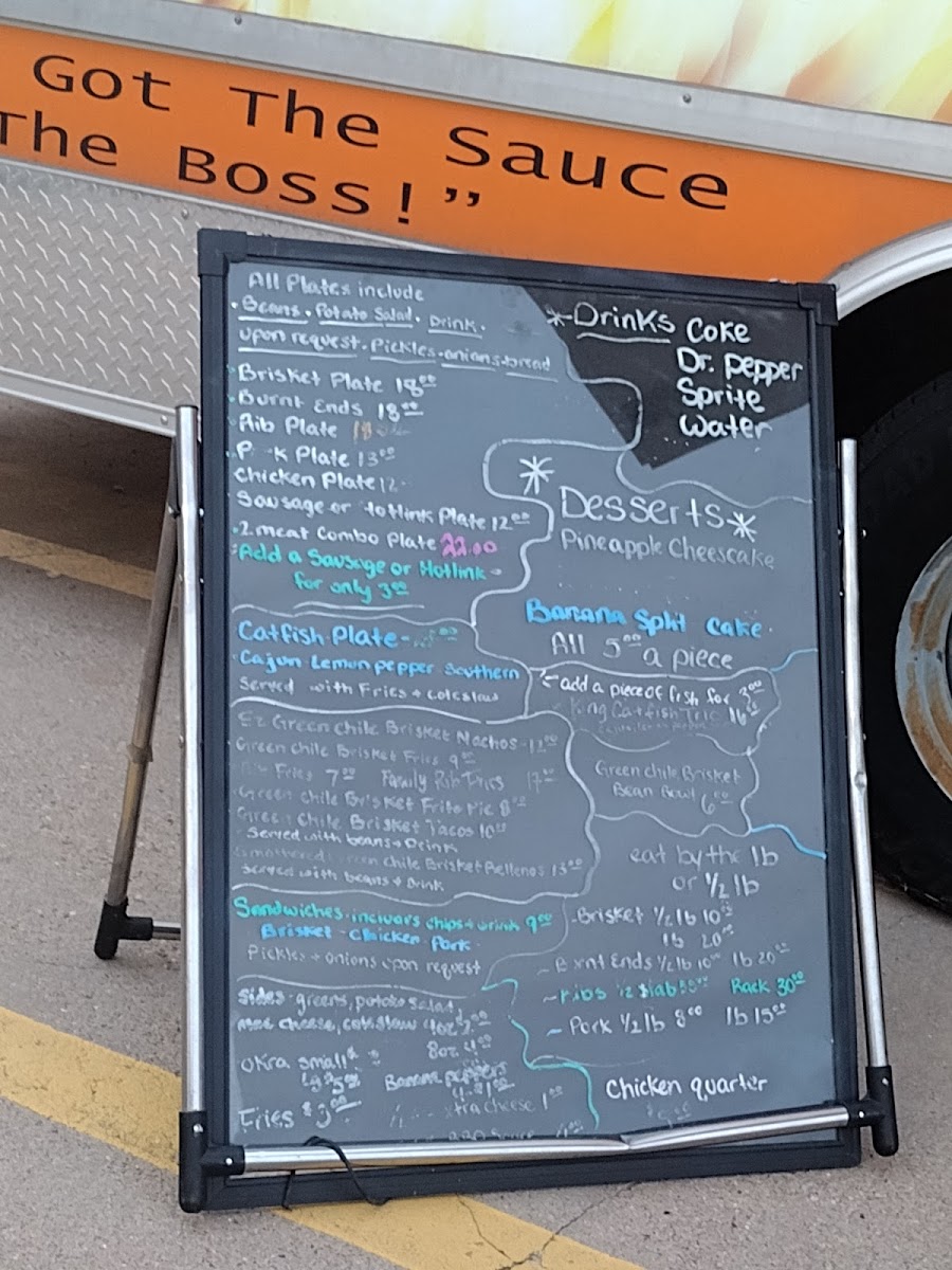 The menu at The BBQ King And More offers a wide variety of flavorful dishes, making it a great destination for barbecue lovers. Their Meat Plates feature classics like Ribs and Brisket, with options for a 2 Meat Combo or Hot Link for those craving variety. For sandwich lovers, there are options such as the Catfish, Pork, and Brisket Sandwiches, alongside the hearty Sloppy Hogg and Chicken Sandwiches. The Burgers section presents bold creations like the Green Chili Cheese Brisket Burger and the indulgent Bacon Mac & Cheese Burger. For those who prefer their meats by weight, the By the Pound menu offers Brisket, Burnt Endz, Pork, Chicken Quarter, and Ribs. If you're in the mood for something lighter or smaller, their Combo Sandwiches serve up Brisket, Pork, Sloppy Hogg, Catfish, and Chicken options. For a crisp bite, their Wingz come in options like 10 Wingz or a 6 Wing Combo. Kids are well-catered for with the Kid’s Baskets, perfect for younger appetites. Sides are a great complement to any meal, with favorites like Coleslaw, BBQ Sauce, Fries, Smoked Mac & Cheese, and Beans. Their creative menu also features dishes like Green Chile Brisket Tacos, Smoked Brisket Posole, and EZ Green Chile Brisket Nachos, perfect for a unique take on BBQ. As for desserts, satisfy your sweet tooth with options like the Pineapple Cheesecake and Banana Split Cake. The restaurant’s extensive menu ensures there's something for everyone, from those craving classic BBQ to those looking for inventive new flavors.